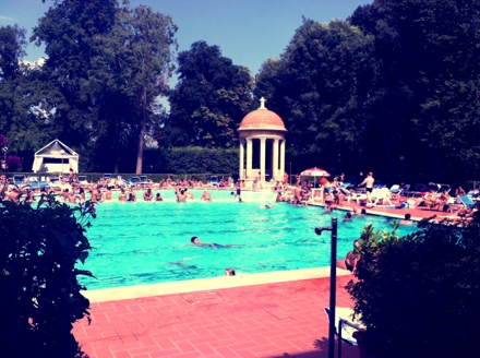 Petre, Kent’s wonderful student advisor in Florence, is nonstop with emails about things to do in around the city. Since its been ninety degrees here all week, we took her suggestion to check out a public pool on the edge of town, Le Pavoniere in Cascine Park.